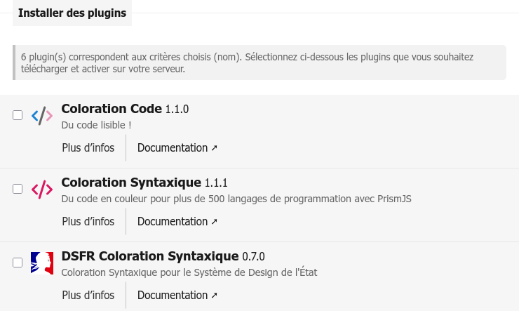 Le plugin DSFR Coloration Syntaxique n’est donc plus maintenu et peux tout a fait être supprimé.