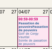 TOUS les titres d'événements s'affichent en double dans la calendrier, ce qui est du plus mauvais effet ... Mais qu'importe ! Un très bel outil qui ne sert finalement à rien ... dommage ... Son concepteur doit être aveugle !!
