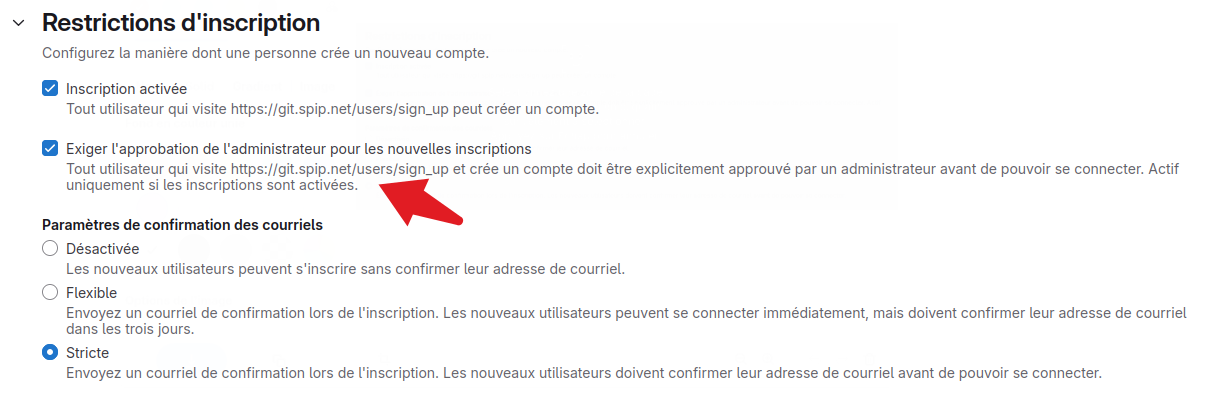 Il y a donc bien un mail qui arrive chez l’utilisateur mais après approbation par un admin. Autant expliquer la démarche comme ça ?