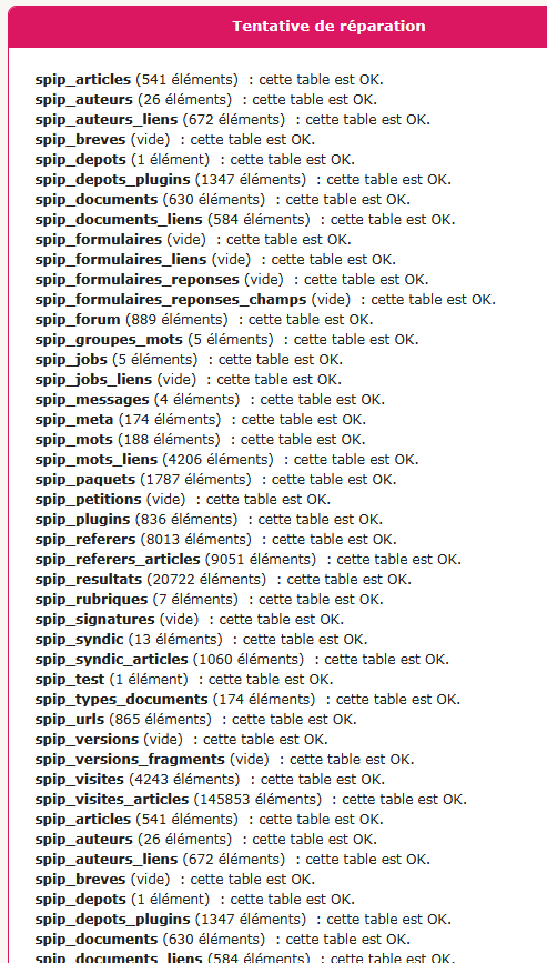 Est-ce que par hasard, les tables sont préfixées dans leur nom par autre chose que spip_ ?